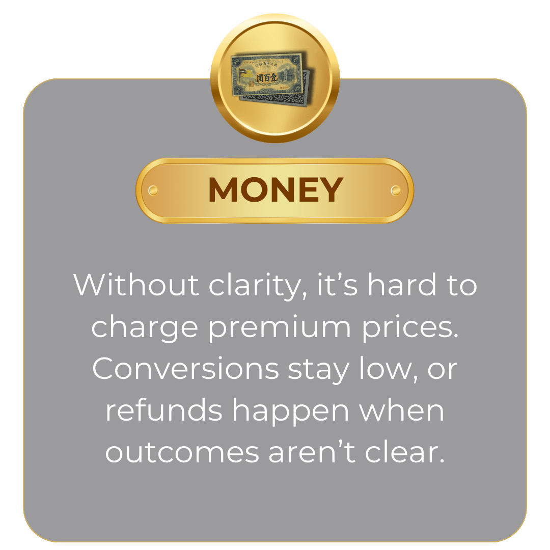 Your ideas are powerful, but they need order. Without structure, your energy leaks into endless rewriting and redoing. Your students can feel your value, but without a clear outcome to follow, they hesitate to commit. This stage is not about doing everything — it’s about doing the right first things in the right order.